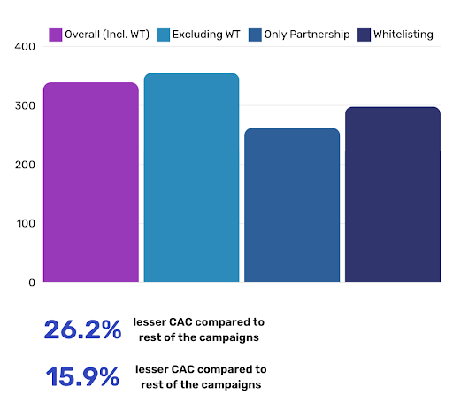 By harnessing the power of influencer whitelisting campaigns, India’s 1st Glycerin-Free Curly/Wavy Hair Care Brand achieved remarkable marketing success. Identifying top influencers in line with their brand ethos, they secured direct ad publishing access. Rigorous audience testing, including page engagers and lookalike audiences, led to outstanding outcomes: increased revenue contribution, superior ROAS, and reduced CAC compared to alternative campaigns.