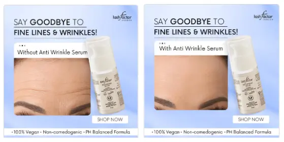 In this phase, we tested creatives of a non-hero product called Anti Wrinkle Serum & saw an improvement in its conversion rate since the product was high priced an improvement in the account’s AOV.