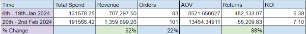 This resulted in an 88% reduction in returns, reflecting a substantial improvement in overall profitability.