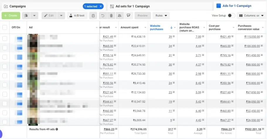 Since in the initial days FB dashboard was not having proper attribution so we told the client to shift to Trueroas and within a week we gradually saw the account scaling and we could hit our target CPA and revenue every single day.