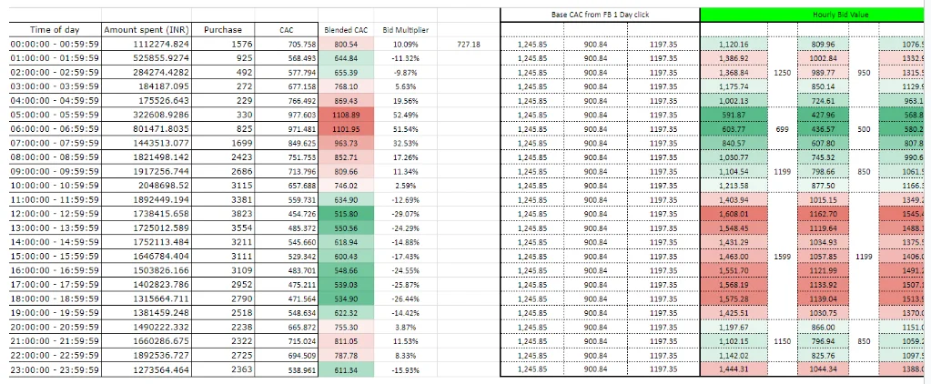 Finally, we find out our hourly bid value with the help of Base CAC and Bid Multiplier