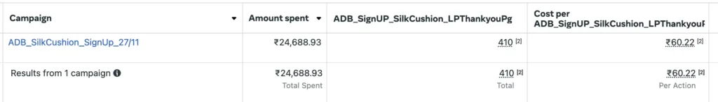 Cost per Signup- INR 31.3