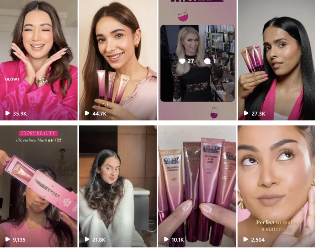 Typsy Beauty is an emerging beauty brand that recently launched a collection of beauty products called “Silk Cushion.” The strategy involved generating demand through Meta ads, upselling to existing customers, and leveraging influencers to reach new audiences.